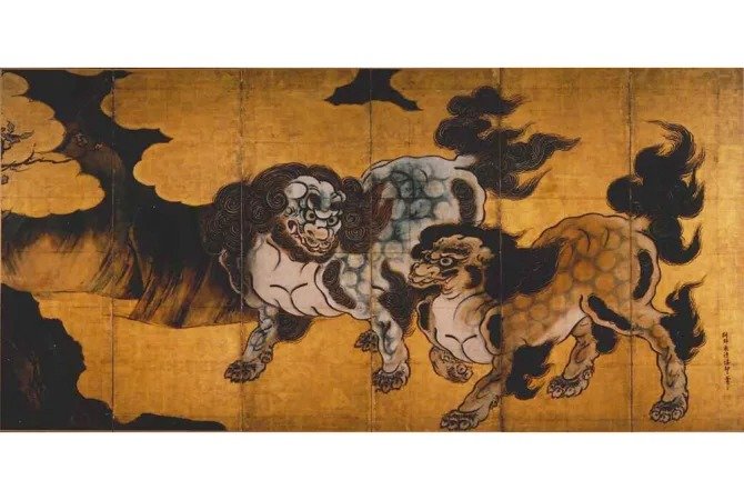 《唐狮子》(右边屏风),创作者:狩野永德。国宝