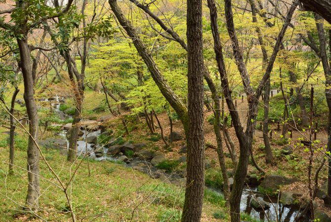 过去曾是势力强大的德川家故居,自 1969 年对外开放后,这座森林公园就一直是民众、情侣及游客散步休闲的僻静天堂。