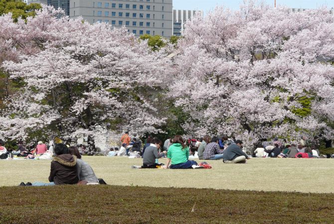 在春天,北之丸公园是适合到粉红樱花树下野餐,或到护城河观赏河面小船的美妙地点。走到公园的西侧,就能看到红叶园,到了秋天,庭园里的枫树就会化为一片火红的林海。池塘周围有数棵高大的银杏树,从十一月下旬到十二月初,树上会缀满金黄色叶子。