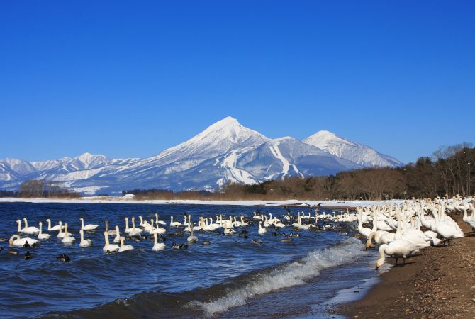 不畏寒冬,观赏栖息此地的北方娇客。从冬天到初春,自北方迁徙的数千只天鹅会聚集在这片辽阔的湖岸周围,以便过冬和觅食,进而形成了难得一见的奇景。