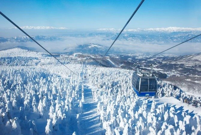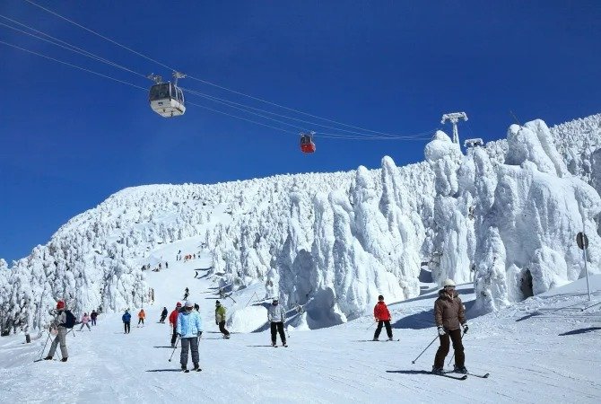 藏王之所以被称为滑雪胜地,是因为这里的雪道众多且质量上乘,白天或夜间均可滑雪。藏王的著名象征是"雪怪",是被冰雪覆盖的树木,形态各异,仿若拥有生命,是非常罕见的冬季奇景。