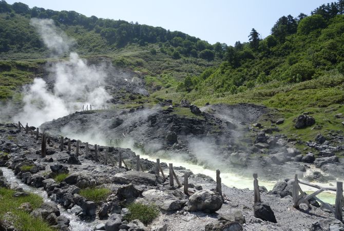 这处古色古香的温泉位于八幡平峰顶下,只要走一小段山路即可抵达。一边享受周围的自然风光,一边在火山温泉中泡汤放松。