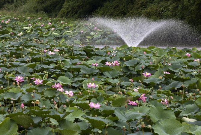 千秋公园内种植了 800 棵樱花树,当春天樱花盛开时,总是吸引如织的游客来此赏樱。白天可在树林间散步,或登上塔楼俯瞰四周风景。