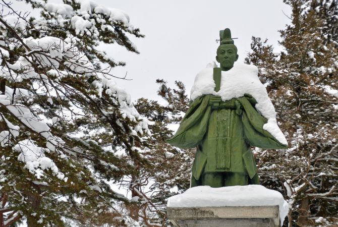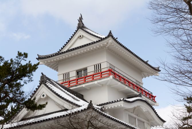 千秋公园座落在 19 世纪毁于火灾后修建的久保田城遗址上,目前的城堡遗迹仅剩隅橹和二层楼的木门。