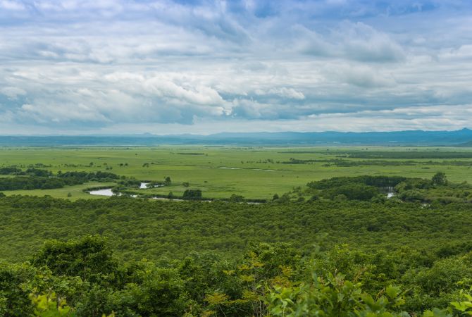 这里有许多美丽而独特的地点供您欣赏湿地景观。来到细冈展望台,欣赏沼泽地与蜿蜒的钏路川形成的迷人景色。观鸟者可以在温根内的木板路上漫步,观赏鹤、斑胸草雀、大蓝鹭和其他鸟类。您也可以开车到钏路市湿原展望台欣赏丰富的自然景观,或爬上偏远的 Kottaro 湿原展望台,欣赏沼泽地的壮丽景色。