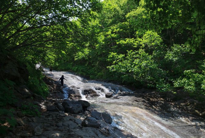 从活火山硫磺山一侧涌现的温泉水,与河流的淡水混合之后,形成神之水温泉瀑布的独特露天温泉。
