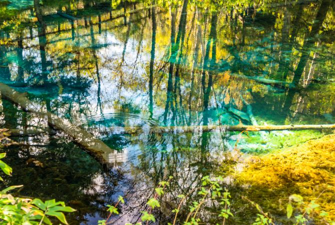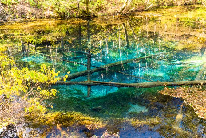 水温长年保持 8 摄氏度,因此被淹没在池水中的树木并没有腐烂