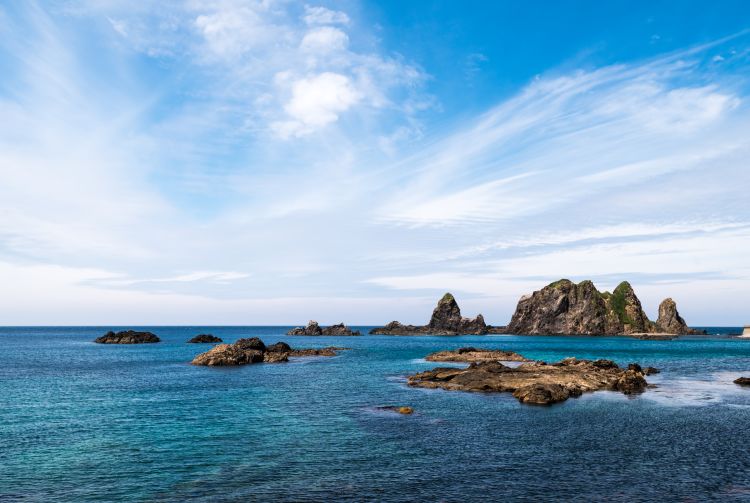 奥尻岛位于日本海,此处的海水呈现梦幻般的蓝绿色,被盛赞为"奥尻蓝"