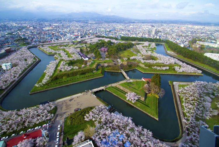 德川幕府战败也标志着明治政府的开始。1914 年,五棱郭的腹地改建为公园,向大众开放。