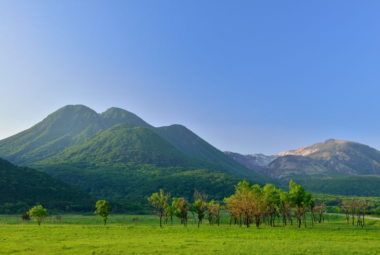 九重山和阿苏山均位于阿苏九重国立公园内,它们分别是九州最高的山峰和日本最大的活火山。山脉附近的黑川温泉是一个典型的温泉小镇。