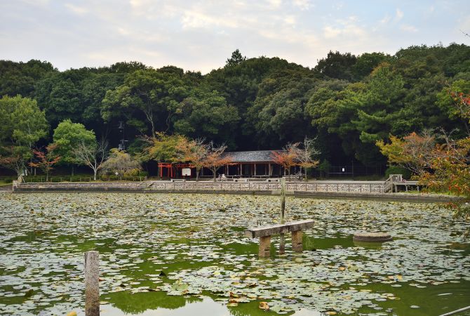 从橿原神宫前站步行几分钟即可到达橿原神宫。它供奉的是日本第一位天皇——神武天皇,这里便是他的登基之地。参观完神社建筑后,您可以在深田池等周边宁静的区域漫步。