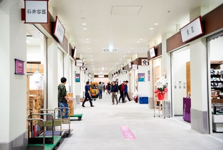 世界闻名的金枪鱼拍卖会也在这座大楼内。水产中介批发场地大楼是各个经销商的商店和摊位,向鱼贩、寿司店和其他当地买家出售海鲜。蔬果大楼则是将来自日本和海外的产品出售给餐厅和杂货店的批发及中介市场。
