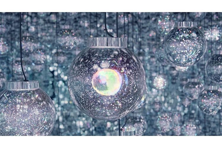 teamLab,《泡泡宇宙:实体光、光之肥皂泡、晃动之光和环境产生的光——一笔》 ©teamLab