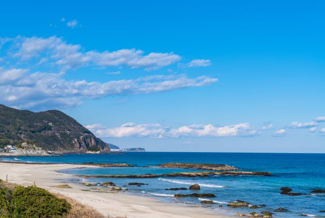 历史如往事云烟,如今人们来到下田,意在享受这里的自在舒适和和煦暖日。这里有很多冲浪圣地,比如白滨沙滩、吉佐美大浜沙滩、入田浜沙滩以及多戸浜海水浴场等更为隐秘的地点。洁白的沙滩干净柔软,环境十分优美,海浪也不时变化风格,或是平静拍打沙滩,或是形成大浪淘沙之景。下田也十分适合家庭出游。