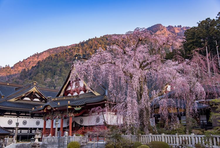 尽管每年有近 150 万游客前来身延山观光赏景,但大部分游客都会在四月中旬赏樱季前来,欣赏主庙前那棵有 400 年树龄的绝美樱花树。