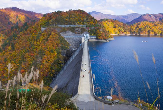 大多数旅客都会选择在秋天拜访奥只见湖,漫山红叶会将周遭的高山渲染成丰富绚丽的秋色。每年 5 月至 11 月会开放游览船,从奥只见水坝开往银山平,船程大约 40 分钟。