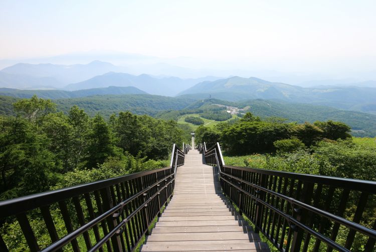 雾降高原是日光三山女峰山的登山口。登上天空回廊的阶梯之后,沿着往赤椰岳的步道前进,最终进入另一条前往女峰山的步道。女峰山是拔地而起的巨大山脊,可俯视日光的知名神社和寺庙。登山步道的难度较高,不适合新手挑战。不过从女峰山上可观赏到备受推崇、绝美的栃木景致。
