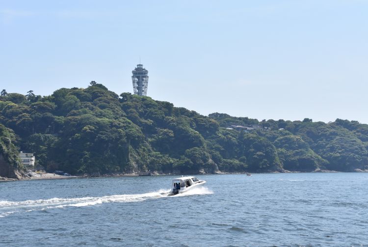 江之岛是镰仓西面的一个小岛,通过一座长 400 米的桥与陆地相连。