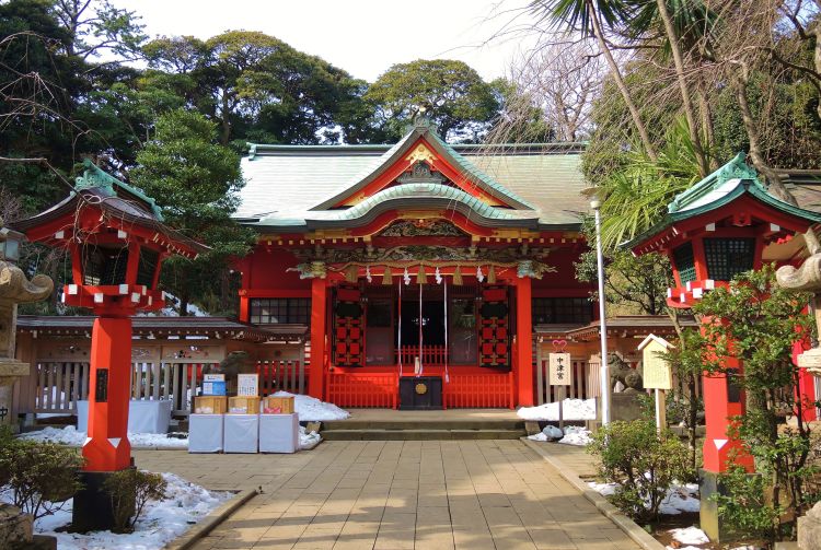 江岛神社实际上包括分布在岛上不同位置的三座神社。边津宫是沿途的第一座神社,始建于 1206 年,这里供奉着妙音弁财天。往前一点就是中津宫,建于 853 年。最后是奥津宫,在原建筑被风暴摧毁后,这座神社于 1841 年重建。