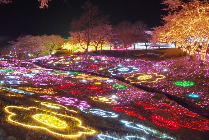 相模湖度假村欢乐森林亦设有休闲温泉浴场,冬季夜晚还可以欣赏相模湖灯光秀。