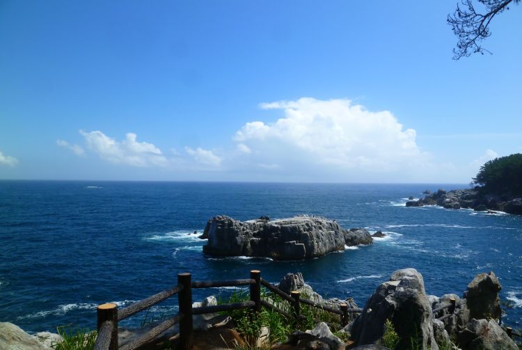 沿着唐桑半岛的偶来步道漫步,体验大自然的壮美:一座高耸的岩层从海上升起,宛若一根巨柱,但被海啸摧毁了顶部。