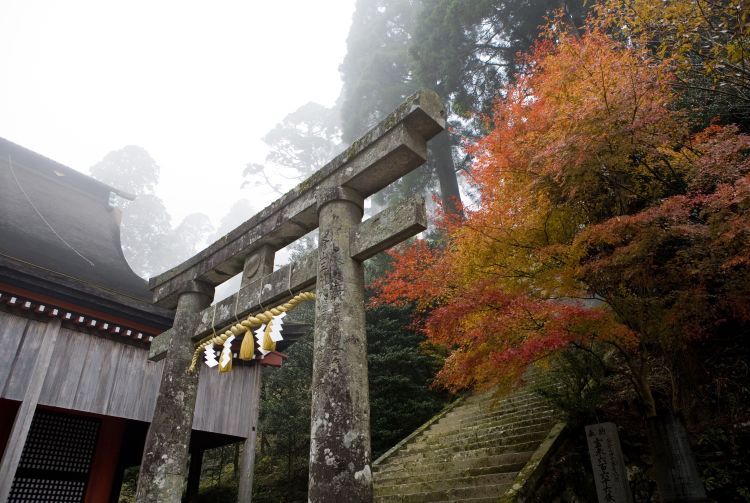 英彦山是佛教修验道的修炼之地,因山上的多家修验道寺院和神社而闻名,这个佛教宗派需要在山间进行苦行僧式的修行。奉币殿是其中最大的神社。这座曾被用作讲堂的宏伟建筑散发着浓浓的历史气息,木瓦屋顶更添肃穆之感。相对于奉币殿,坐落在悬崖底部的玉屋神社规模较小,但庄严肃穆之感不减一分。大南神社的位置更为独特,隐藏于悬崖峭壁下的裂缝中。