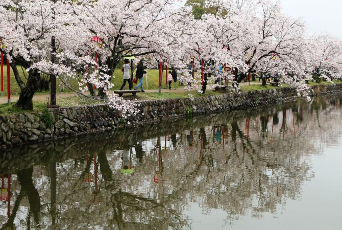 从小城站到小城公园仅需步行一小段路程。环境宜人,一派田园牧歌风光,非常适合野餐或静心散步。尤其是在秋季和春季,这里的景色更加迷人。公园内约 3,000 棵樱花树会在春天同时绽放。