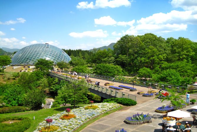 历时 5 年、耗资 180 多亿日元建设的花回廊于 1999 年开放。全年鲜花盛开。一条 1 公里长的步道环绕着巨大的圆顶和各种花园及景观,步道有顶棚覆盖。向外看去,小径两侧是起伏的花坛,一直穿越大山的树林。您还可以欣赏大山的景色。