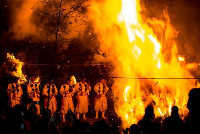 在达陀行法期间,会在空中挥舞七米高的松木火把,当地人则会高声喊出"欸!"。