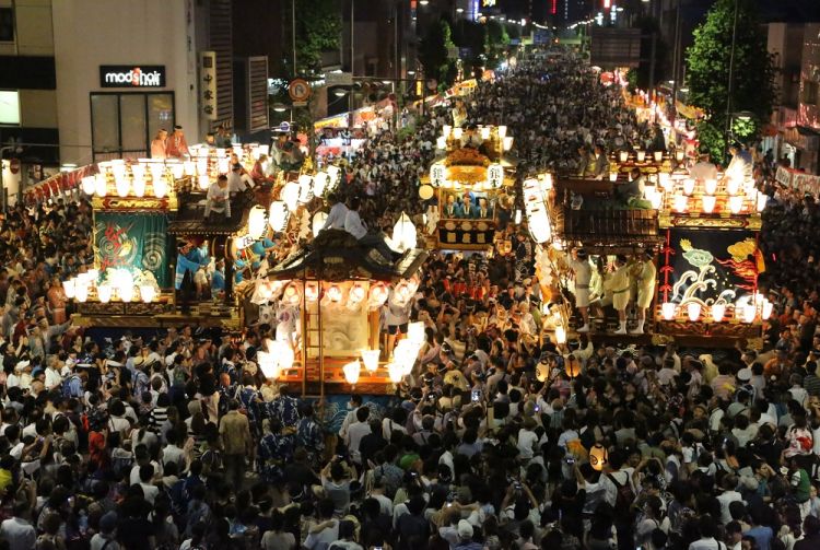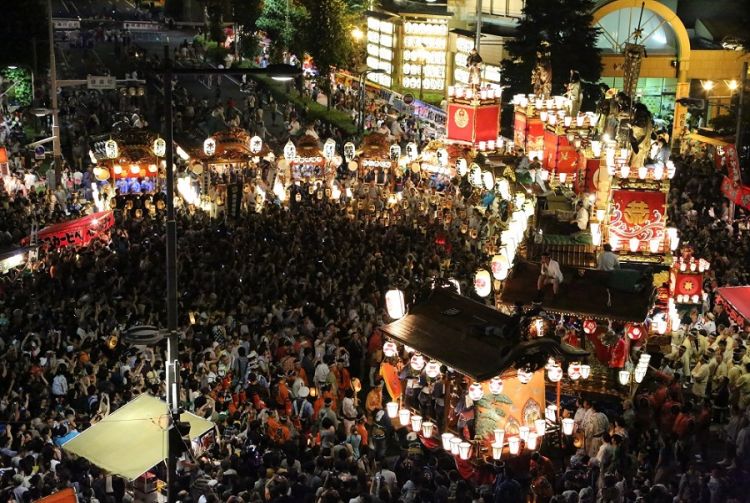 22 日晚上 8 点,全部 12 台祭典屋台和 20 多万人会聚集在祭典广场 (Festival Square)