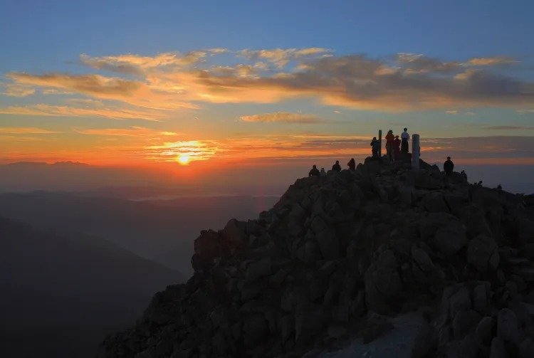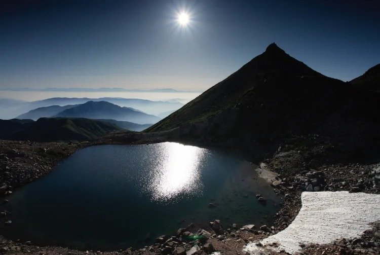 白山的山顶有一间白山比咩神社,是山脚下同名神社的小分社。若天气晴朗,您将可以看到日本海以及北阿尔卑斯山的壮观美景,不枉此行。您可以绕到山顶的另一边,环行返回室堂小屋,沿途会经过数个蓝绿色的火山口湖。沿着山顶环行,全程不到 1 小时。