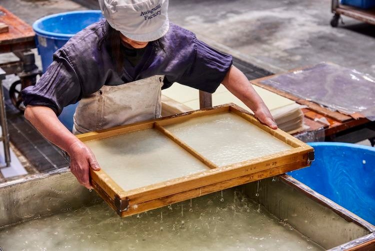 阿波(今德岛)的日本手工纸或和纸传统始于公元 700 年左右,在明治时代 (1868-1912) 达到顶峰。这家会馆成立于 1989 年,旨在为日本子孙后代保留阿波和纸的技术和技巧。您可以在会馆内了解更多有关阿波和纸的信息。