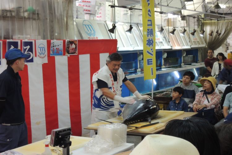 主要活动是在 9 点 30 分举办的金枪鱼切片表演。渔夫会在您眼前将整条金枪鱼切片分割,然后以合理的价格将其出售给游客。