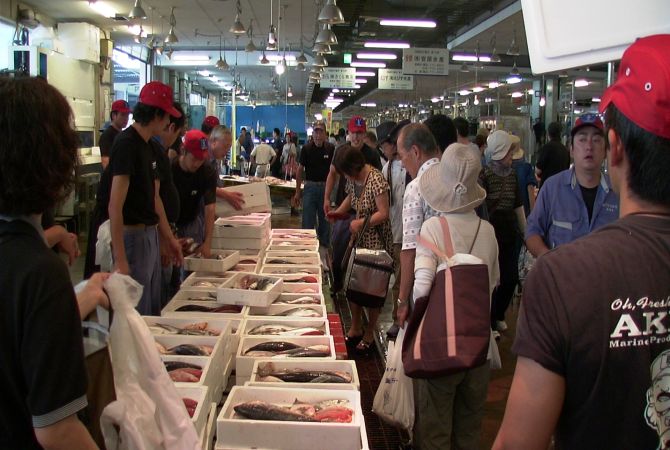 由于最鲜美的渔获很快就会销售一空,因此最好能趁鱼市一开门就进去。其中以 1,000 日元的海产大礼包最受欢迎,往往几分钟内就被抢购一空。