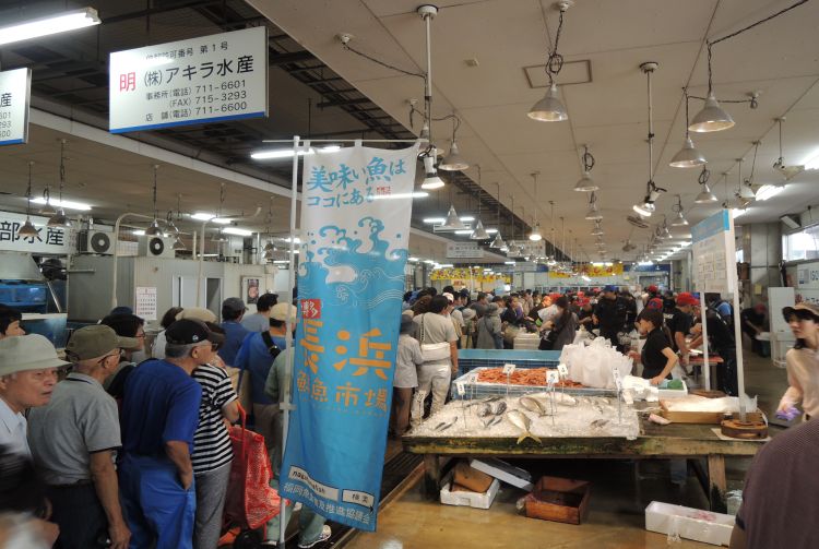 长滨鲜鱼市场是九州最大的商业鱼市。渔夫会在这里将当日的现捕渔获贩卖给当地渔贩与餐厅。鱼市每个月会对外开放一次,让游客有机会一睹这个当地绝佳鱼市的内部景象。
