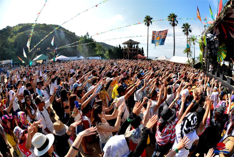 共有超过 50 个乐团在 5 个舞台上进行表演,沿着海滩,就是福冈部分最佳餐厅与咖啡厅的摊位,售卖各式各样美食、饮品。