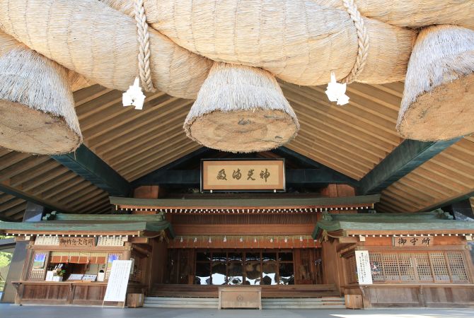 在根本堂旁边是摩陀罗神社,这座神社是由出云大社原址拆成瓦片后,翻山越岭运来重建而成。