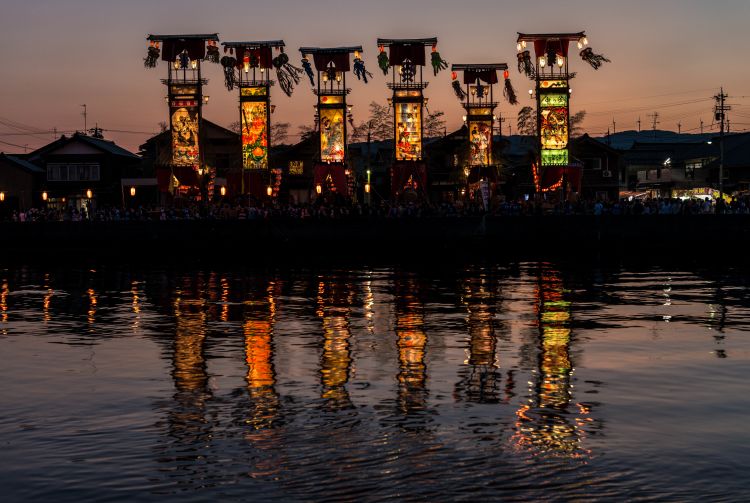 从七月到九月,石川能登半岛的大城小镇都在举办盛大的能登切子灯笼祭。切子灯笼祭声势浩大,气氛热烈,精心装点的切子灯笼在小镇内游行,之后人们会点燃神舆或者把它们扔进海里。人们认为火能焚烧人们的烦恼和不幸。