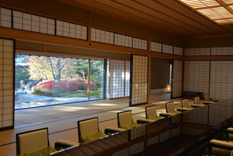 在建筑本身与内部用品上运用了大量的传统工艺。接待宾客时,均会以风雅的花道作品为摆设。