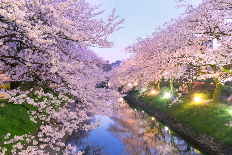 沿着两岸种满樱花树的松川游船河,为静坐原地的传统赏花活动增添新意。于整个四月开放,趁着这个难得机会,享受搭船赏花的乐趣。白天是如画般的美景,到了夜晚,更是美不胜收。