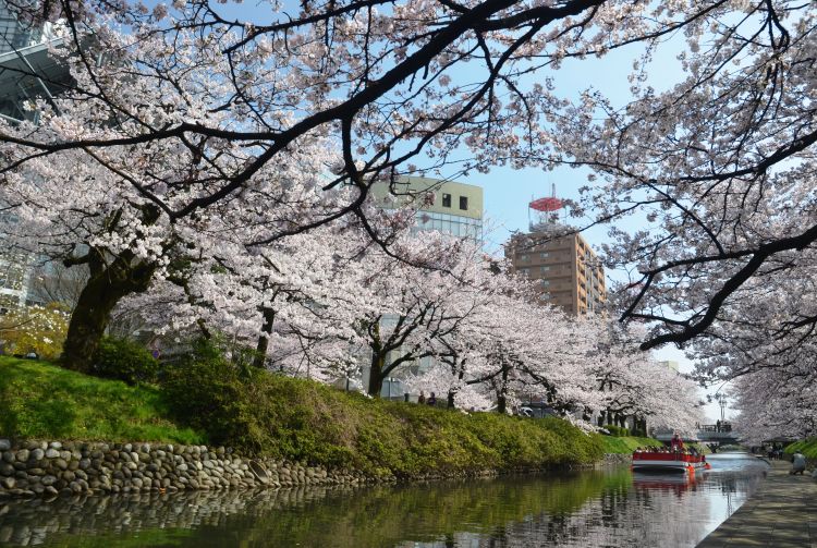 到富山市中心搭船游览樱花隧道