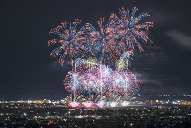 每年的 8 月 1 日到 3 日,在信浓川堤岸,接近大手桥的位置,会举行长冈花火大会。烟火会持续施放几个小时,并以许多大型烟火表演作为特色。