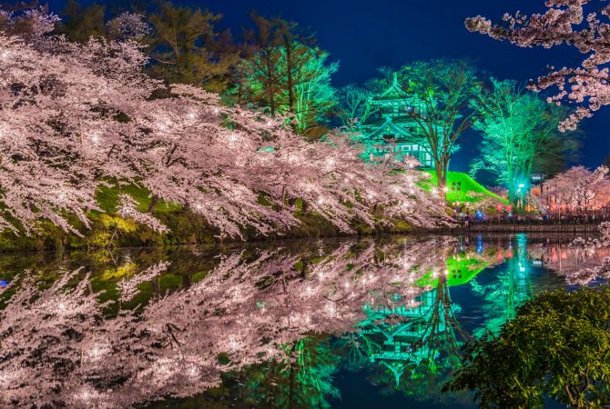 高田公园不仅是日本的三大夜樱景点,也被 CNN 选为全球五大花之绝景。