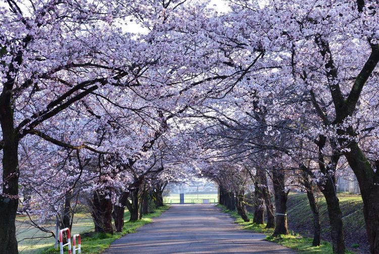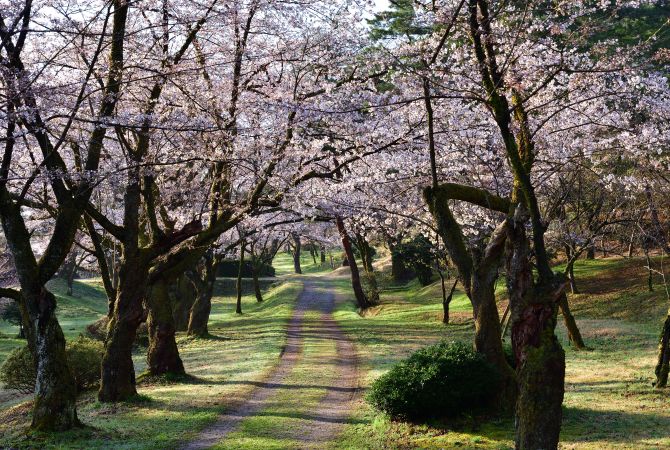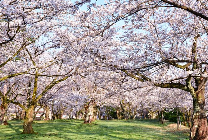 每到春天,村松公园里的约 3,000 棵樱花树就会盛放白色与粉红色樱花。