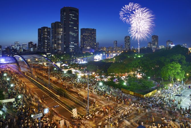 祭典:参加大阪最重要的祭典,观赏花车、烟火与船上的篝火