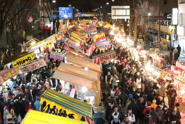 无论晴天或下雨,这项传统祭典每年 1 月 9 日都会在前桥市中心的 50 号公路上举行。会有几百个摊位贩卖幸运符与达摩,所以您一定会找到心中所爱。最常见的种类是达摩人偶,但是您也可以购买其他类型的幸运符,例如招财猫。初市祭能让您享受地道的集市体验,这里通常没有标价,让您有机会和友善的摊贩老板杀价。