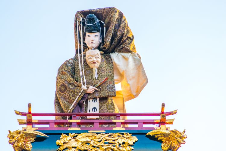 每一台江户风的祭典屋台都各不相同,有专属的装饰和配色。在两层楼高的结构顶端,承载着古代传奇人物人偶。