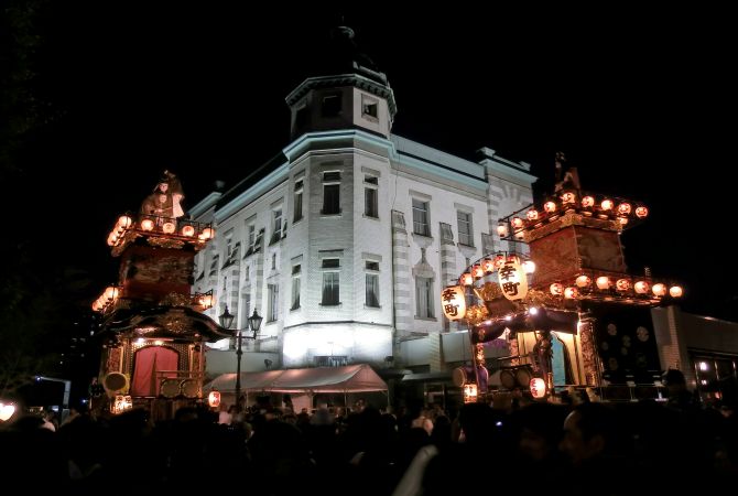 白日时分,您可以近距离观赏这些令人印象深刻的祭典屋台,以及与乐师和祭典爱好者一起,伴随祭典屋台步行在街道之中。