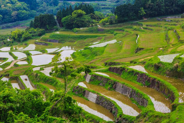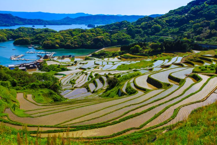水稻梯田通常位于山区,人们使用石头和/或泥巴将其仔细砌成层层阶梯。大浦被誉为日本百大水稻梯田之一。