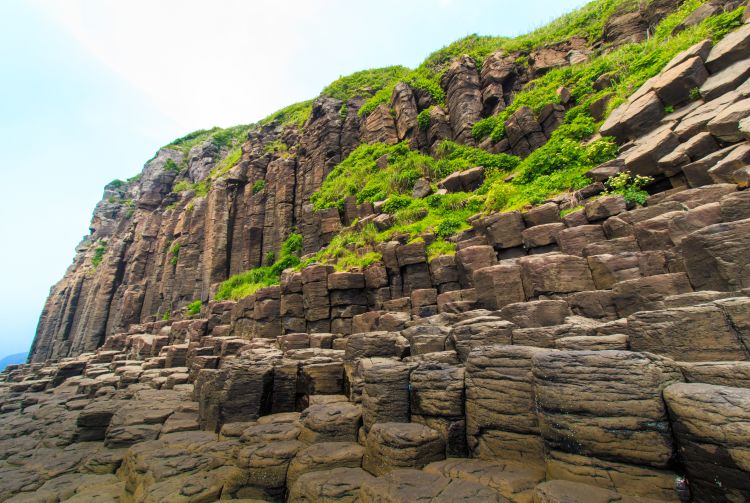 盐俵断崖高约 20 米,沿岛屿海岸延伸约 500 米,玄界滩经年累月的持续撞击造就了它的奇特外观。岩壁崎岖且伟岸,充分展现了大自然的力量。